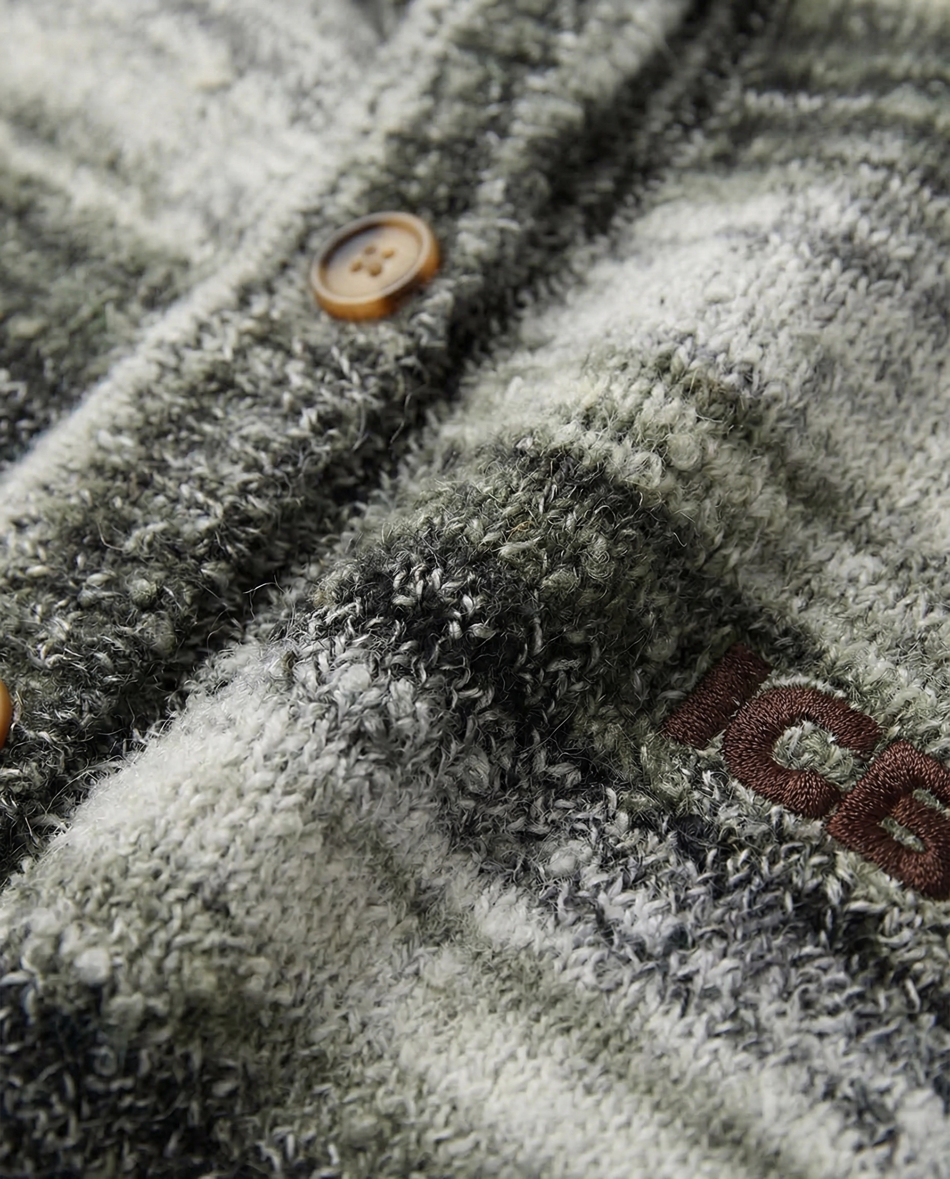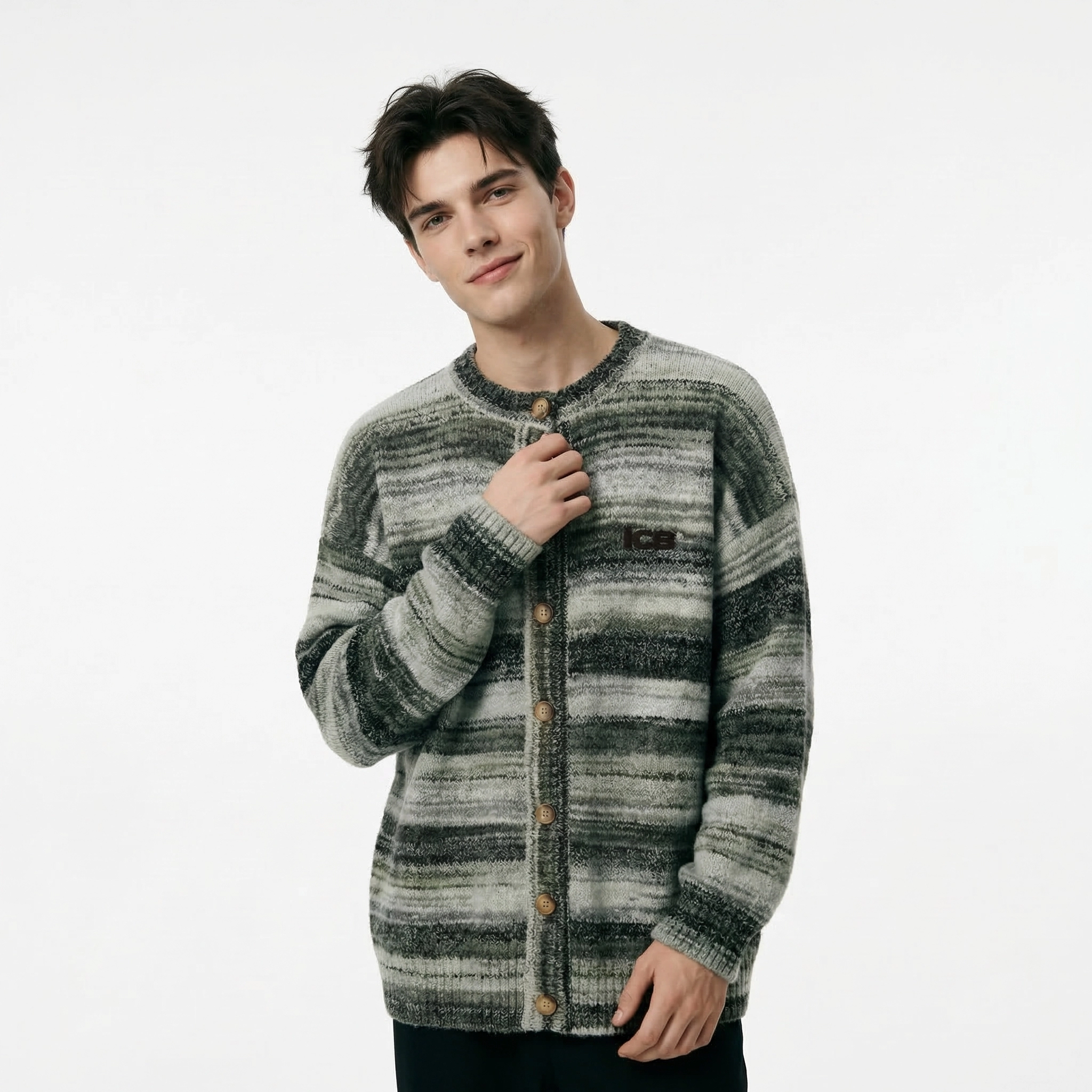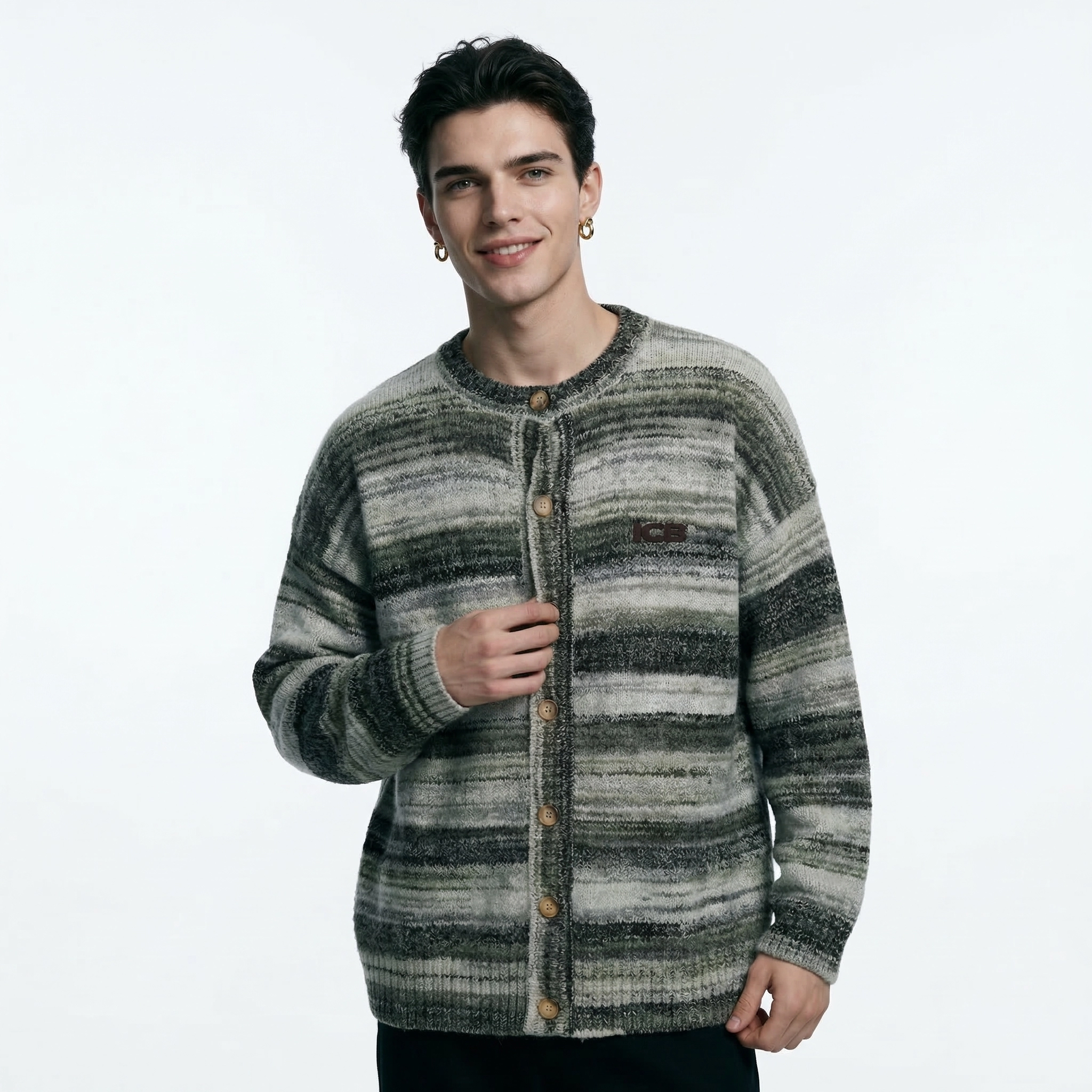 يتميز هذا الكاردigan الرجالي بتصميم خطوط متدرجة عتيقة، مع خطوط مختلطة باللون الرمادي والأخضر تعكس أجواء كسولة. العنق الدائري وزر الأزرار الخشبية تصميم كلاسيكي وسهل الارتداء؛ الشكل الفضفاض مع الأكتاف المنسدلة يناسب جميع أنواع الجسم، مما يوفر تغطية وتأثير نحيف. مصنوع من قماش صوف مختلط ناعم وصديق للبشرة، له لمسة دافئة ورقيقة، وقابل للتنفس وغير خانق، ويعمل بشكل جيد للتنسيق في الشتاء أو ارتدائه بمفرده في الربيع والخريف. تضيف علامة ICB المطرزة على الصدر الأيسر تفاصيل دقيقة، مما يجعله مثالياً لإنشاء مظهر عصري غير رسمي يومي، سواء للتنقل اليومي أو الخروج في عطلة نهاية الأسبوع أو التجمعات غير الرسمية.