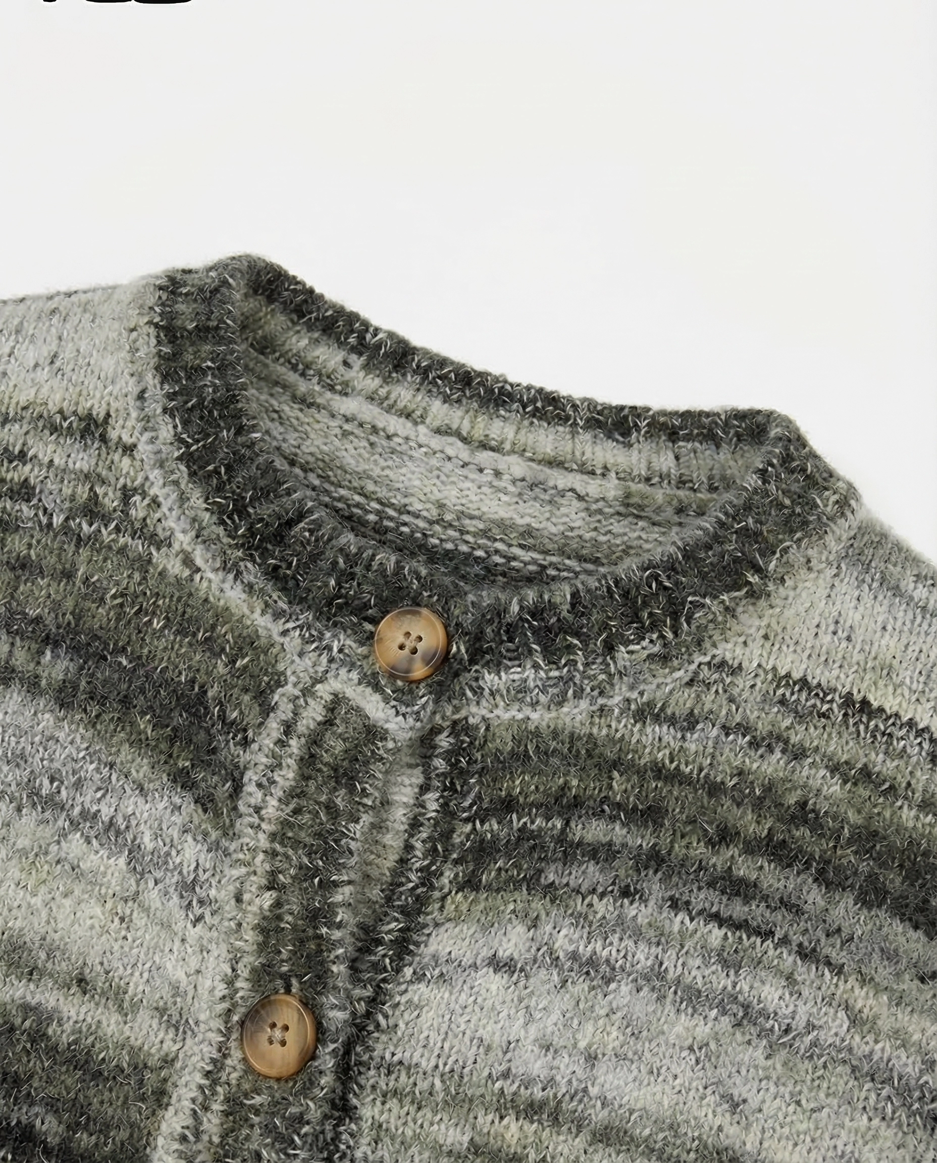 كارديجان محبوك بياقة دائرية بتدرجات عتيقة | جاكيت فضفاض بأزرار خشبية للرجال | سترة مطرزة بأسلوب كسول ICB