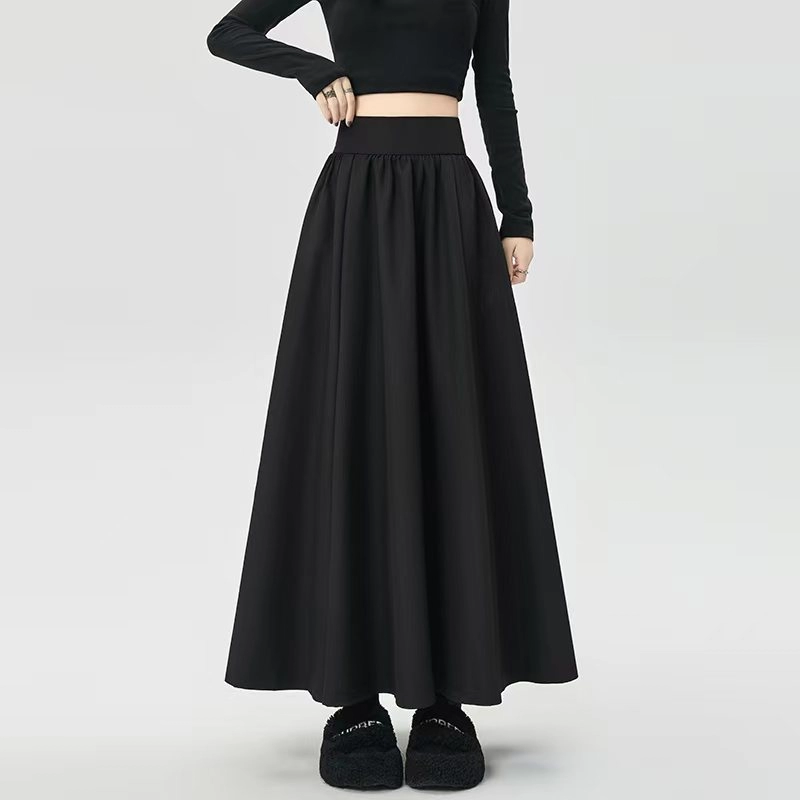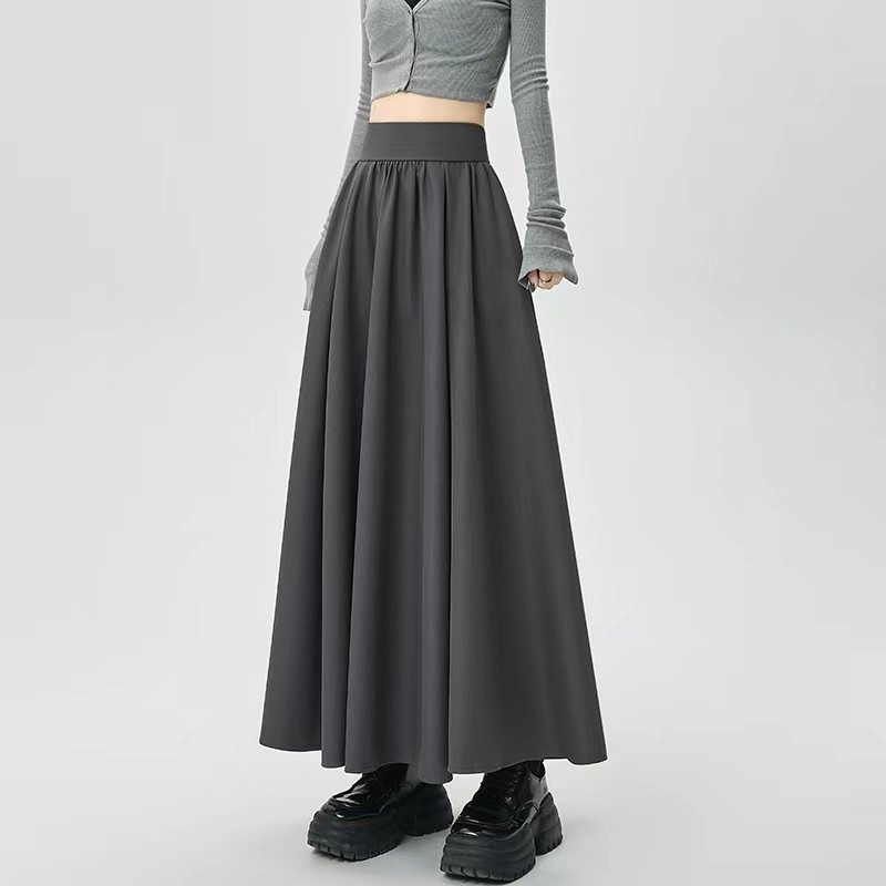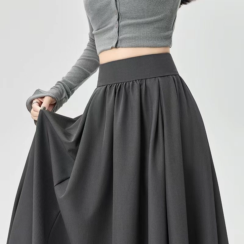 Introducing the 2025 Autumn High-Waisted Pleated Skirt. This versatile and elegant piece is specially designed to enhance the quality of a woman's autumn wardrobe. It seamlessly combines the sophistication of a suit with the comfort of casual wear. The high-waist silhouette cleverly tightens the waistline and elongates the leg proportions. The A-line wide skirt silhouette naturally spreads out from the hips, effortlessly shaping the waist, hips, and leg lines, achieving a slimming effect. High-quality fabrics with excellent drape are selected, and the skirt flutters gently with each step, showcasing a dynamic texture and high-class charm. The delicate pleated texture adds layers and a retro touch, making the piece. Whether paired with a crisp shirt and suit to create a professional work look, combined with a soft sweater to create a laid-back weekend vibe, or paired with a fitted top to create a romantic date outfit, this long skirt seamlessly integrates classic design with trendy elements. It is a medium-thickness autumn-exclusive item that balances warmth and comfort, and is a must-have individualistic piece that can be freely switched in different scenarios, injecting elegance into your autumn look.