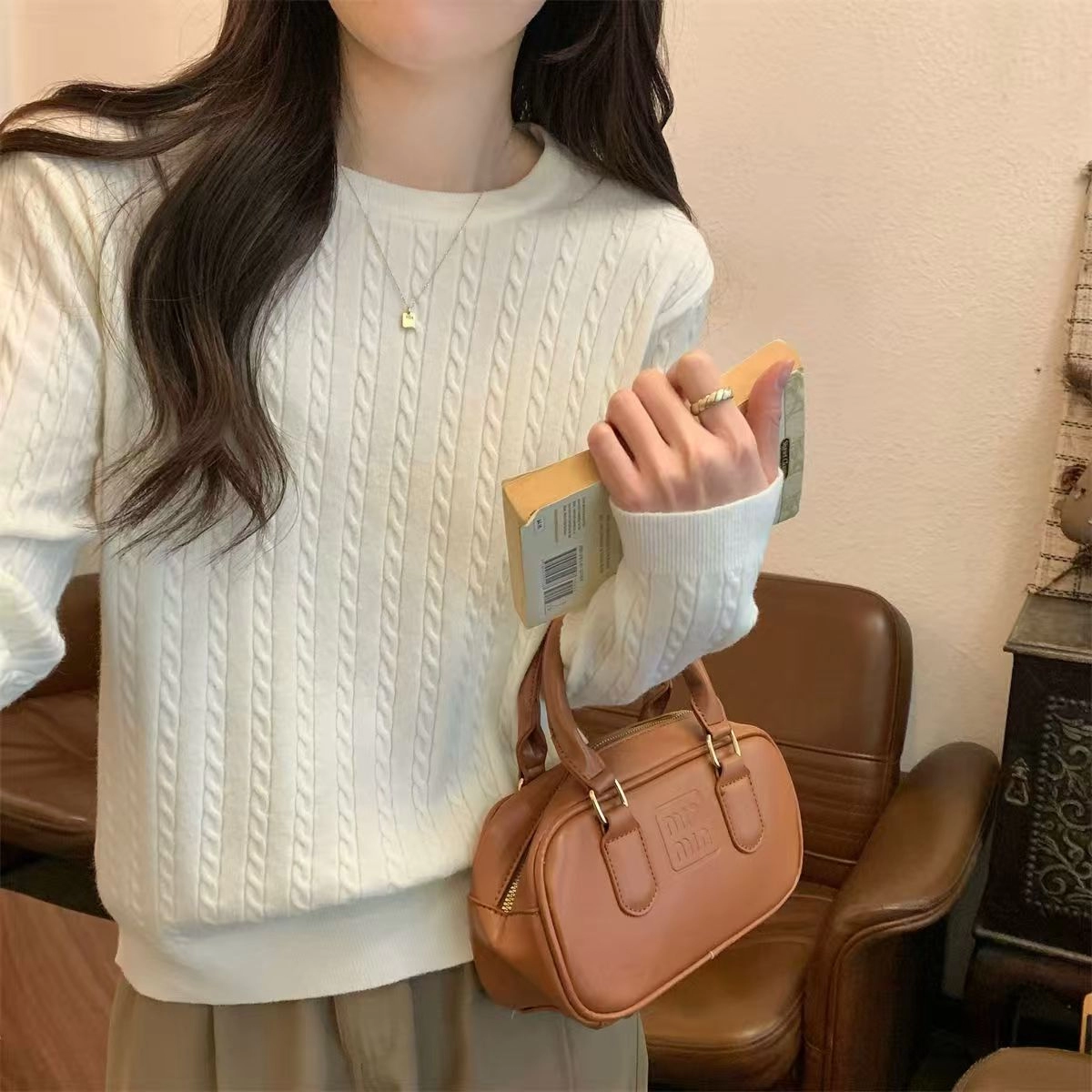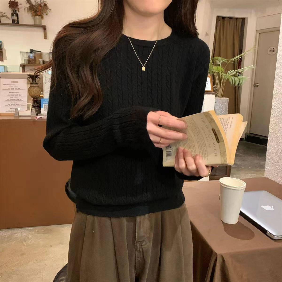 Introducing the circular-knit pullover sweater with a round neckline. This versatile and charming piece is specially designed for women, allowing you to wear it comfortably and stylishly throughout spring and autumn. It is crafted from high-quality core-spun fabric, with a soft and fluffy texture, excellent elasticity, and long-lasting durability. It is gentle on the skin and non-irritating, making it suitable for even sensitive skin. The classic round neckline design flatters the neckline, and it is suitable for both inner wear and outer wear. The delicate cable knit texture adds a retro touch and depth, enhancing the academic style. The short style and loose cut cleverly elongate the waistline, and pairing it with a high-waisted bottom is a perfect match, highlighting a lively and youthful vibe. We offer multiple classic solid-color styles, with thickness that balances warmth and breathability, suitable for single wear or layering. Pair it with pleated skirts and loafers to create a classic academic look, combine it with jeans and sneakers to create a casual daily style, or wear it under a cardigan / coat to deal with temperature changes. This long-sleeved sweater seamlessly combines practicality and fashion, becoming an indispensable basic item in your spring and autumn wardrobe, exuding effortless charm.