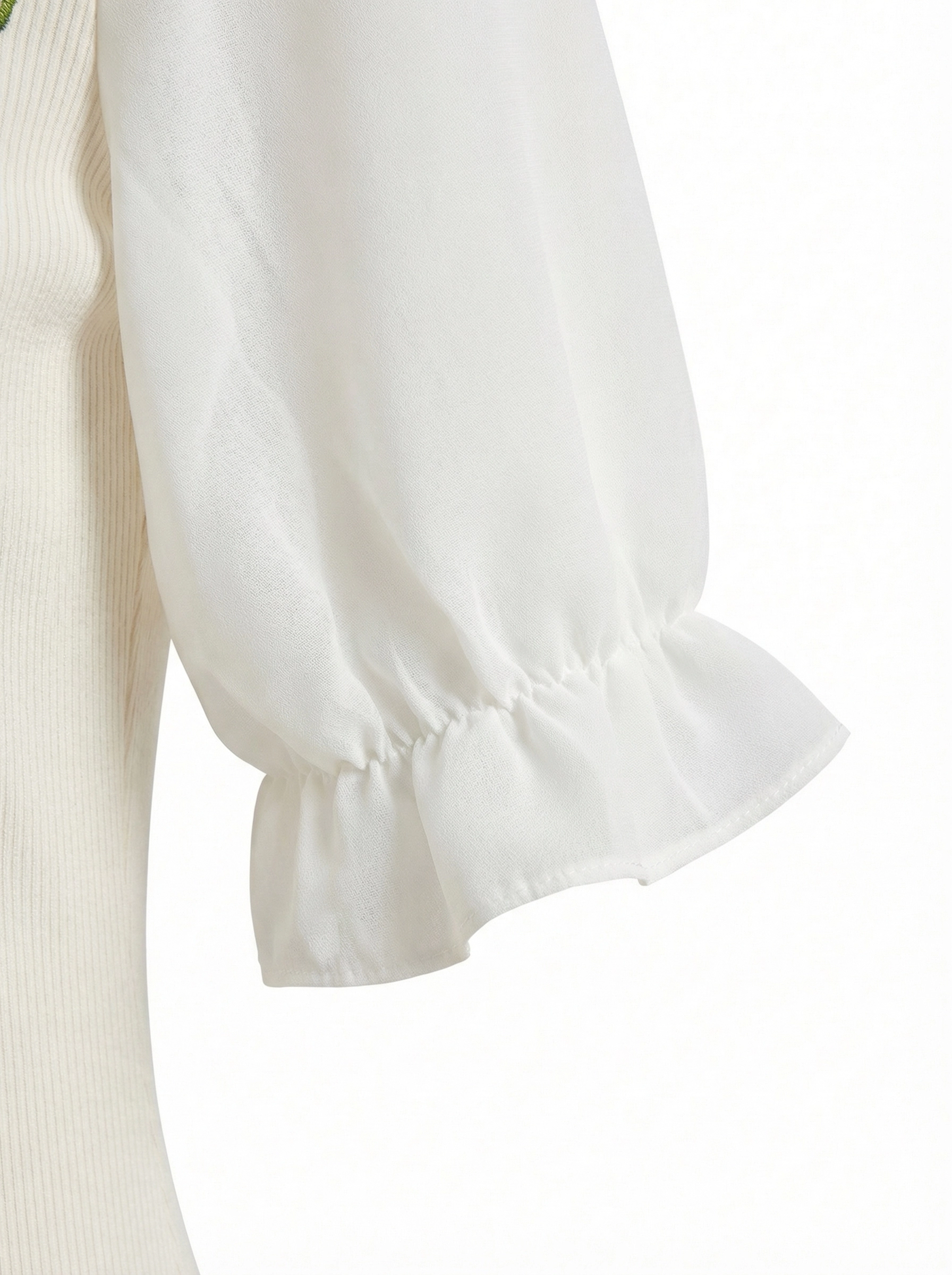 - Sleeve Fabric: Chiffon/georgette lightweight fabric, sheer and flowy, with a smooth touch, creating a material contrast with the main knit body to add lightness and layering.