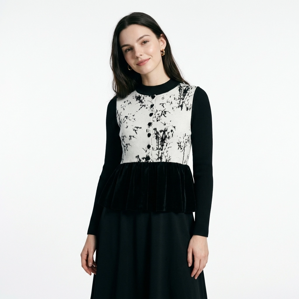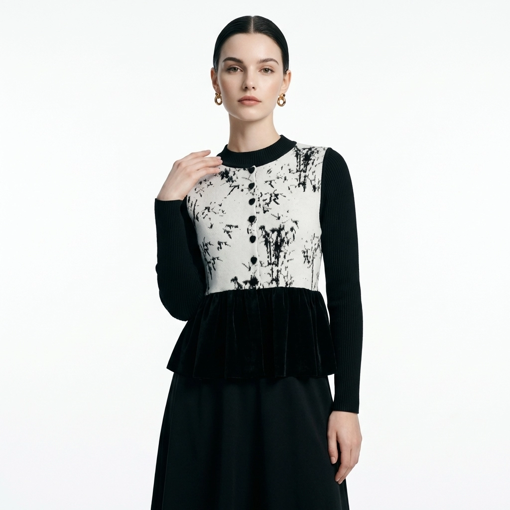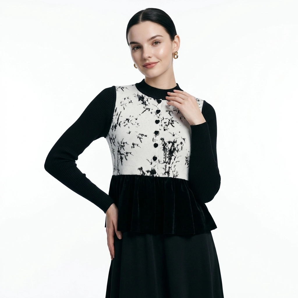 - Knit top: Jacquard knitting craft, neat ink-wash tie-dye pattern, durable rib sleeve elasticity, resistant to deformation and pilling.
