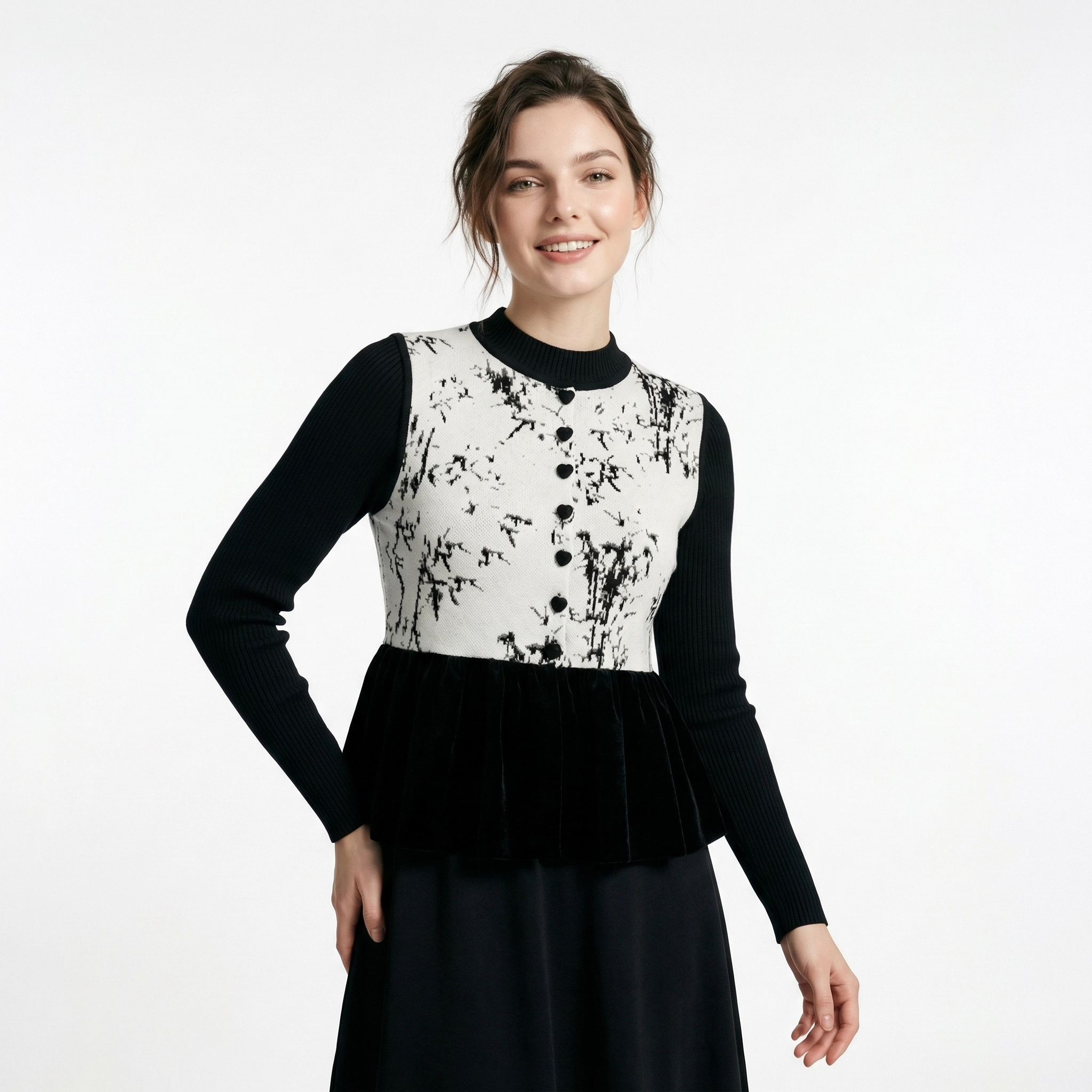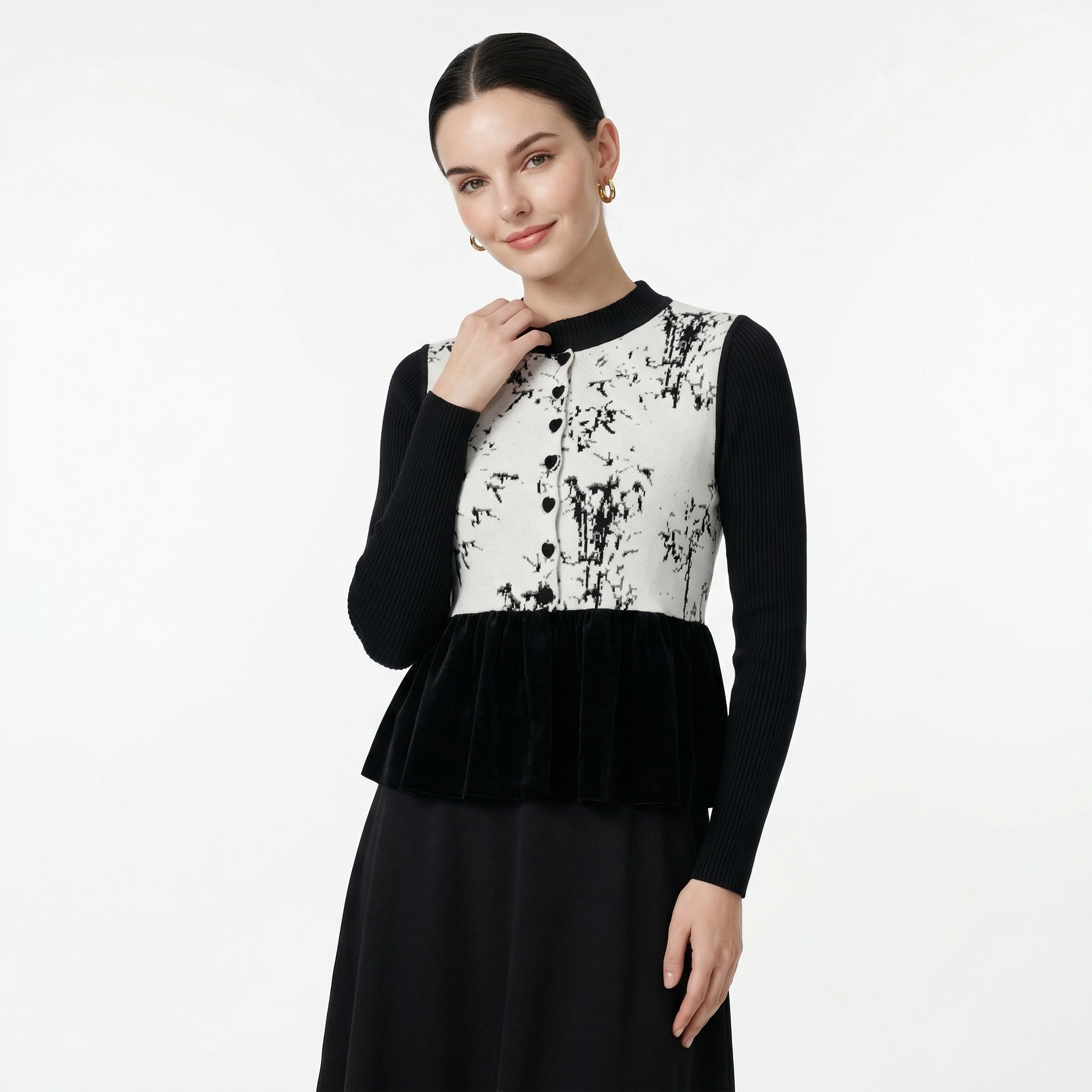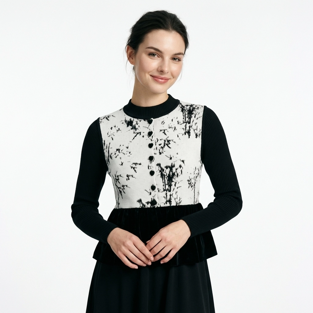 - Knit top: Jacquard knitting craft, neat ink-wash tie-dye pattern, durable rib sleeve elasticity, resistant to deformation and pilling.