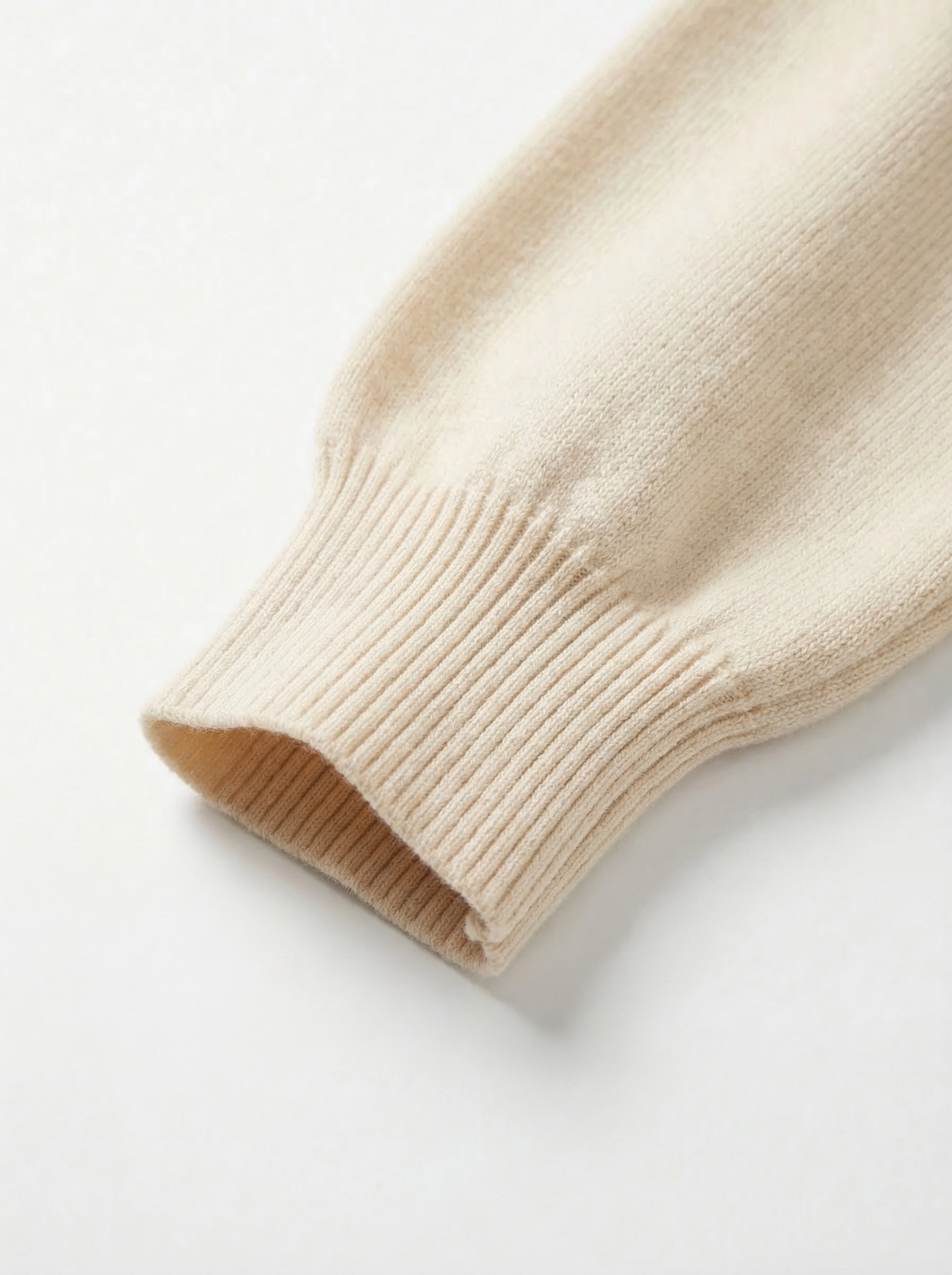- Inner top: Mock turtleneck with ribbed edge, fitting the neck for wind protection; balloon sleeves with ribbed cuffs, flattering the arm lines.